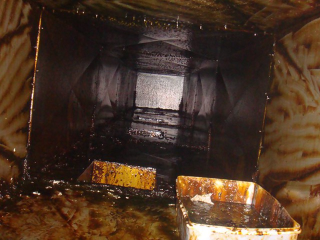 煙道、煙罩常年處于高溫工作環(huán)境,油煙氣化形成積油、積炭或油膩的膠狀物,這三種物質非常容易引起火災。若不經(jīng)常清洗,積油越積越多 ,順著煙罩自然倒流,不僅影響飯菜質量,而且還有損酒店信譽。同時,煙道中易寄生老鼠、蟑螂,不符合國家衛(wèi)生標準,油膩膠狀物長期扒附在金屬表面,增加煙道和風機工作負荷,還會腐蝕金屬材料,大地縮短煙道及風機使用壽命。